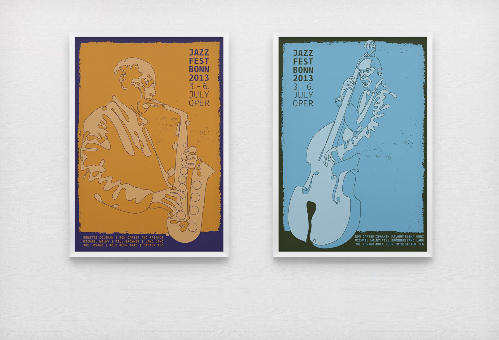 Fiktive Konzertplakate für Klassik- und Jazzveranstaltungen. Die Arbeiten bestechen dabei durch unterschiedliche Stil und Farbgebungen, die die jeweilige Musik der Künstler widerspiegeln. Monotone Fotografien erzeugen eine melancholische Atmosphäre, die im Einklang mit der klassischen Musik steht, während schwungvolle und farbenfrohe Illustrationen die kreative Dynamik der Jazz-Künstler verkörpern.